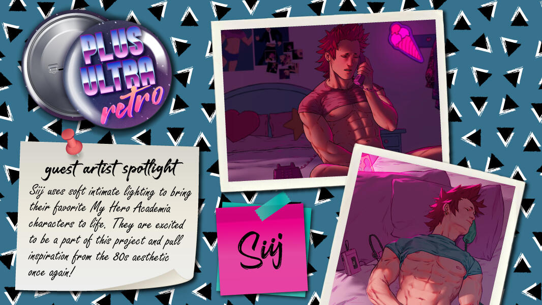 Here you will find a number of 80's themed aesthetic and merch ideas that could fit this zine. This list is populated with the submissions we've received in our Interest Check and elsewhere, which we publicize here in the hopes of inspiring you all in your 80's BnHA creations.